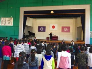 転出・退職される先生方は子どもたちの校歌の歌声に、涙が止まらない様子でした。