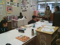 アルファベットの学習、フォニックスのルールを意識しながら、一つ一つの音を丁寧に確認しました授業ではALTの先生が、発音の仕方について丁寧に指導してくださいました。説明はとてもわかりやすく、具体的な例を示したり、絵を見せたりしながら進めてくださったことで、イメージを持ちながら理解を深めることができました。実際に口の動きを意識しながら発音する姿も見られ、意欲的に学習に取り組んでいました