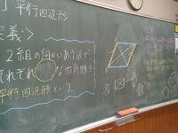 2年生の数学では、「平行四辺形」について学習しましたまず、平行四辺形の定義として、「向かい合う2組の辺がそれぞれ平行な四角形」であることを確認しました。図を使いながら平行四辺形の性質を整理しました