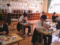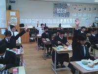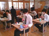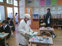 中学3年生には卒業を祝う、お祝いデザート(ケーキ)も用意されました。思い出に残る給食のひとときとなったようです