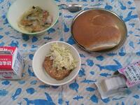 今日の給食は、照焼チキンバーガーと野菜スープでしたパンには、マヨネーズで和えたキャベツとチキンパティをはさみ、生徒たちは自分でバーガーを作りながら、おいしそうにほおばっていました。温かい野菜スープとともに、楽しい給食の時間となりました