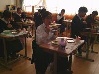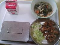 本日の給食の献立は油淋鶏(ユーリンチー)とわかめスープでしたカリッと揚げた鶏肉に、ねぎやしょうがなどの香味野菜を使った甘酸っぱい特製ダレがたっぷりとかかり、ひと口食べるごとに食欲がわく、満足感のある一品でした。わかめスープは、やさしい塩味で体をほっと温めてくれ、主菜との相性もぴったりでした