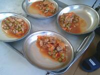本日の給食は、子どもたちに人気の「チキンライス」と「コーンスープ」でしたチキンライスは、具材とご飯を自分で混ぜて仕上げるスタイル
