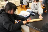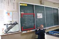 6年生は、理科の授業「てこのはたらき」を学習しています。理科の先生は、「支点、作用点、力点」の3つの点がどのようにはたらいているのかを理解させるために、実際に実験を行ってくださいました。木にささった釘をバール(釘抜き)で抜く作業を体験しました。バールという名前を知らない子どもたちも多かったですが、答えることができた子どももいました。釘抜きの道具で実際に釘を抜いた体験から理解させていく学習方法は、子どもたちにとてもわかりやすかったです。