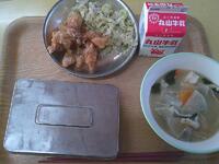 鶏の唐揚げ 、ゆかり和え 、大根の味噌汁