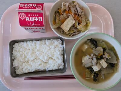 今日は、かぼちゃ汁をいただきました。かぼちゃが甘く、具沢山で美味しかったです。