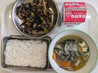 今日は、肉味噌ひじきごはんをいただきました。肉味噌の味付けが濃い目で、ごはんに合い、ひじきの旨みも感じられました。