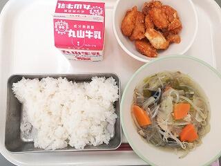 今日は、ヤンニョムチキンをいただきました。ピリッと辛みのあるイメージですが、ケチャップを入れて甘めの味付けにされていたので、低学年の子どもたちも美味しそうに食べていました。