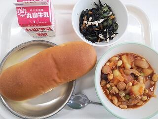 今日は、チリコンカンをいただきました。様々な種類の豆が入っていました。トマトベースの味付けに、ウインナーのうまみも加わり、美味しかったです。