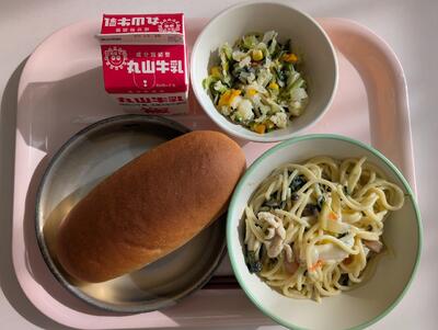 今日は、クリームスパゲティをいただきました。クリーミーなソースがよく絡み、野菜の甘み、ウインナーの塩味が感じられ、美味しかったです。