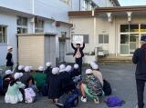 避難後、警察の方からの講話がありました。学校内だけでなく、登下校中についての話もありました。
