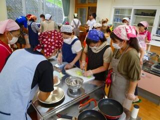 今回は、延岡市健康増進課の管理栄養士さんと、延岡市食生活改善推進員の方をお呼びし、野菜を取り入れたおやつ(軽食)の調理法を教えていただきました。餃子の皮を使った「しらす干しピザ」と、茹でたかぼちゃを練り込んだ「かぼちゃ白玉」です。どちらもとってもおいしく出来上がりました!