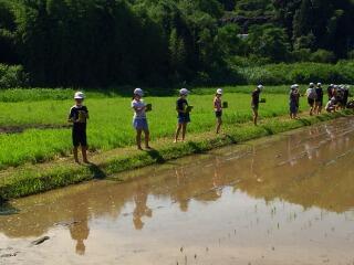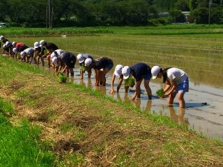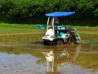 6/21(月)、晴天で暑い中、小学部5年生22名が、田植えをしました。まず、田植え機に乗って機械で植える体験を一人ずつさせてもらいました。子どもたちは、嬉しそうでした。そして、手植えをしました。JAの方が紐を張ってくださり、その紐の赤い印がついたところに、稲の苗4,5本の束を植えていきました。みんな、田植えを楽しんでいました。