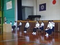 10月29日 県大会へ出場する選手の推戴式を行いました。ソフトテニス競技に男女各1ペアが出場します。