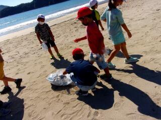 浜では、たくさんのゴミを拾い、環境問題についても考えました。