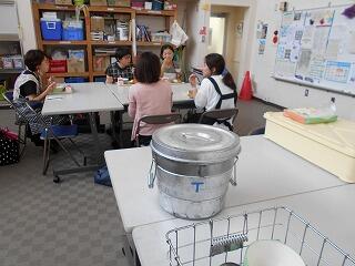 次にスクランブルエッグを作りました。スクランブルエッグは、先に味付けをして炒めます。箸の動かし方によって卵の大きさが変わるので、どんな大きさにするか事前に話し合って決めていました。これで、家でも料理が出来るはず!!家族のために頑張ってくれることでしょう。