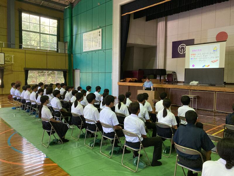 延岡警察署生活安全課少年係から2名の講師を招き、薬物乱用防止教室を行いました。まず、全国、宮崎県、延岡市における薬物に関する逮捕数と具体的な事件の説明を聞きました。その後、薬物等が体に与える影響について話を聞き、薬物の中毒作用の恐ろしさについて動画を視聴しました。危険薬物の恐ろしさを理解し、身を守る方法を学ぶ貴重な時間なりました。