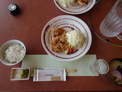 修学旅行1日目の昼食は、レストランでからあげ定食をいただきました。