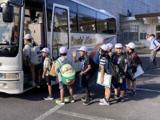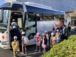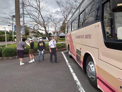 保護者の方々と一緒に、バスの乗り方を学習していました。