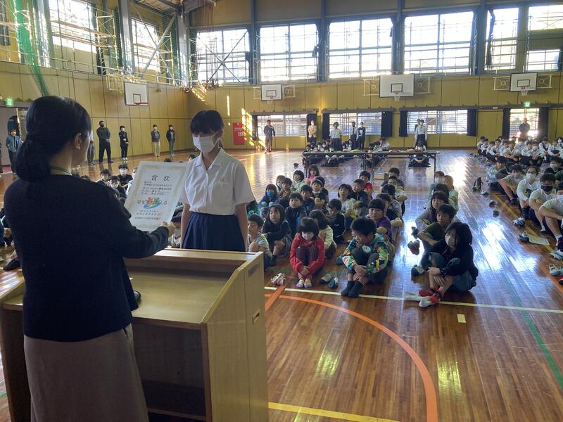 「グループ発表の様子」 「全校学習委員長 お礼のことば」