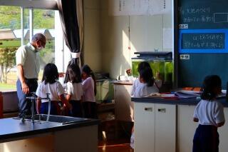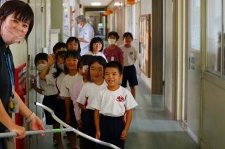 そして、タクシーを待っている間に、子どもたちは上南方小学校を嬉しそうに案内して回りました。