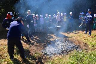 この学習を行う際に、技術員さんからアドバイスをいただいて、担任の先生方が消防署に連絡をしました。そして、たき火の許可をいただき実施しました。今回もたくさん貴重な学びができた1・2年生。