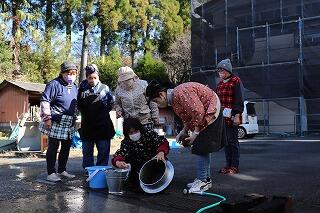 きねの重さにふらふらになりながらもみんなで協力してもちつきをしました。