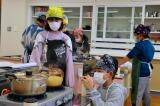 友達と教え合いながら、大根の皮をむいたり、ねぎを切ったり、それはそれはほほえましい光景がたくさん見られました。喜ぶ・デレ