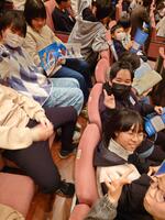 今日は、今年度最後の全校集会でした。毎回楽しみな校長先生のお話。しかし、小学1年生から中学部3年生までに対しての話はとても難しいだろうなと思いながらも、夢中になる時間でもあります。