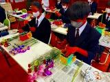 2月15日。中学部が、技術家庭の授業の中で、花育を行いました。