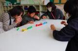 次に、ストローと小さなボールを使った的あてゲームです。数を数えたり、色を復唱したり、お礼を言ったりとゲームを通して楽しみながら、いろいろなことを繰り返し行っていました。笑顔あふれる1時間は、あっという間に過ぎていき、最後は、授業の感想と次に頑張ることの発表をして終了。2人の堂々と発表する姿に感動を覚えました。今年度は、4回の来校でご指導していただきました。中学部でも大きく成長してくれることと思います。