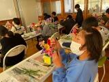 岡田花店から来られた講師の先生の話をよ~く聞きながら、花と悪戦苦闘する子どもたち。