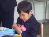 教科書授与では、1年生ながらも堂々と前に進み、校長先生から教科書を渡していただきました。