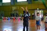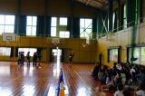 堂々と入場してきたA、B団。立派な挨拶の後、バスケットのシュート対決で色を選ぶ順番を決めます。