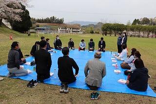 4月2日は、先生方との歓迎昼食会を桜ヶ丘の桜の木の下で行いました。
