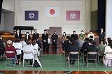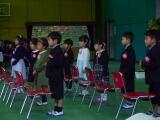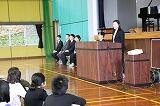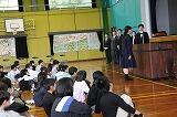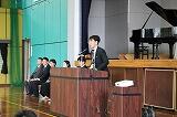 在校生歓迎のことば。小学部は歌のプレゼントをしました。