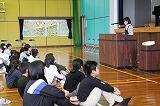 来賓の方々のお祝いの言葉もしっかり聞く1年生。