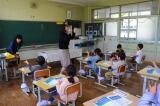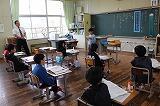 この前入学したばかりの1年生も、教室で慌てることもなく、先生と放送をしっかり聞いていました。