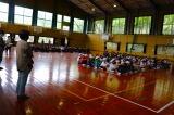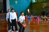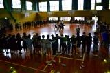 堂々と入場してきたA、B団。立派な挨拶の後、バスケットのシュート対決で色を選ぶ順番を決めます。