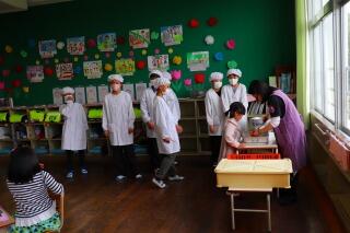 6年生がテキパキと配膳をしてくれましす。さすが6年生です!!