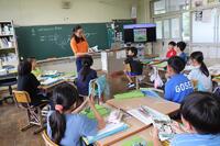 今日は、2時間目から4時間目にかけ、久保先生によるむかばき自然講話を実施しました。最初は、教室で自分たちがどのような場所に住んでいるのか、地形図や質問コーナーで具体的に学んでいきました。