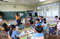 久保先生は、この地区に生息している「むささび」の標本を実際に持ってきてくださいました。児童たちは、「かわいい~」「ざぶとんみたい」と思い思いの気持ちを言ってました。