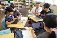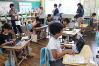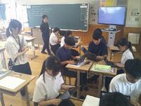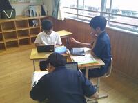 小学1年生は、布施先生の国語科の研究授業「おおきく なった」を受けました。これまで5人の児童が心を込めて育ててきたあさがおの成長を題材として、ロイロノートを活用して、自分の言葉を手書きしました。1年生は人数は少ないですが、お友達とペアになり、お互いの文を読み合ったり、元気に観察したことを記録する活動に取り組みました。