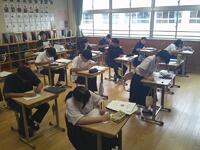 1年生は、もうすぐ始まる定期テストに向けて、クラスのみんなで予想問題を考えました。