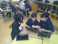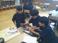 中学部2年さくら学級で国語の授業、「新聞記事を読もう!」話す速さや読みに気をつけながら、要約した記事を紹介できるように練習をしました。前の時間に録音した音声を聞き、互いによかったところなどを共有し、自己評価をもとに、本番(お昼の放送)に向けて、自分の力をどう伸ばしていくかを意識しながら取り組みました。