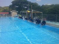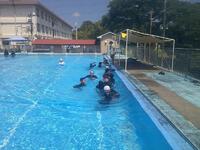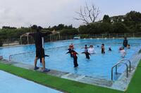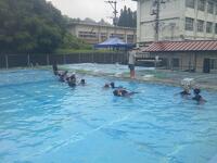 雷の注意報も出ておらず、小雨ではありましたが、安全に配慮しながら予定通りプールの授業を実施しました。本日の水泳授業では、「浮き身」や「ドルフィンキック」に挑戦しました。体の力を抜いて水に浮く感覚や、イルカのように体をうねらせて進む動きを、生徒たちは楽しみながら学んでいました興奮・ヤッター!