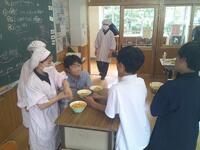 給食準備も、みんなで協力して楽しく進めています。「今日のメニューは何だろう?」と、漂ういい香りに、思わず笑顔になります興奮・ヤッター!準備をしながら自然と会話が生まれ、友だちとのつながりも深まっています。給食の時間が、どの学年にとっても “おいしい” だけでなく “楽しい”時間“ にもなっています。今日の給食のメニューは・・・ホームページの『今日の給食』をご覧くださいにっこり