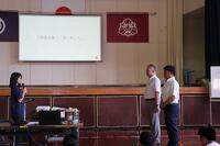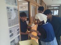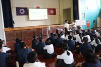 延岡大空襲に関するたくさんの資料(千人針等)を実際に見ることができ、中学生も小学生も平和について考えた時間でした。お礼の言葉「平和の大切さ」を中学部の代表生徒がしっかりと述べることができました。