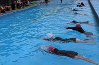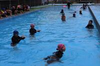 小学1・2年生は、西山先生から、「ブクブク、パッ!」のやり方を習って、水面に顔をつける練習をがんばりました。