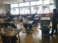 小学3年生は、陣先生の理科の研究授業「風やゴムのはたらき」を受けました。風の強さがものを動かす働きに関係があるのかを確かめる内容でした。実際に実験用ランドヨットや送風機、記録のための巻き尺やタブレット(録画)など一人一人が見通しをもって実験に取り組んでいて素晴らしかったです。